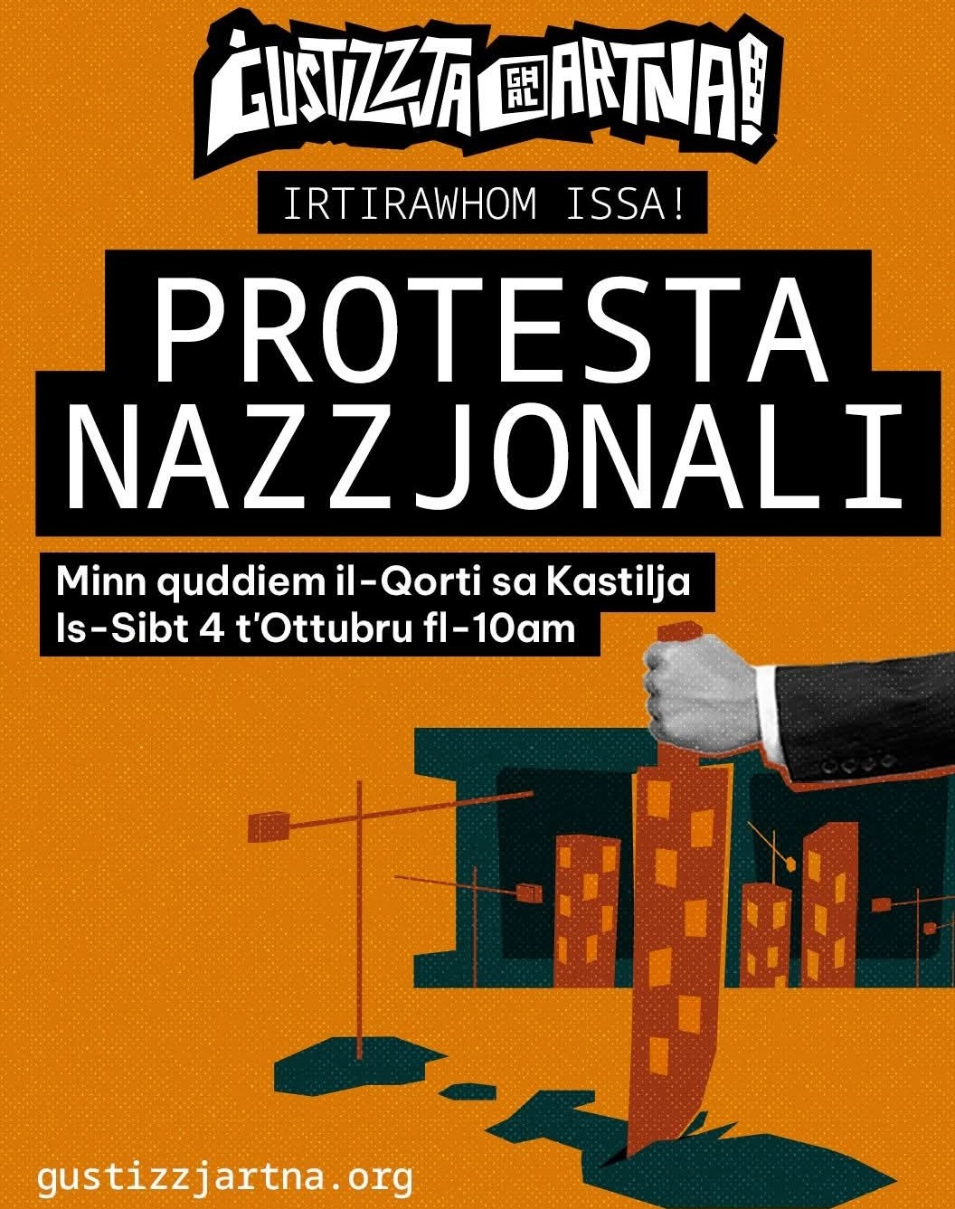 A national protest, Ġustizzja għal Artna: Irtirawhom Issa!, is being called for Saturday 4th October at 10am in response to…